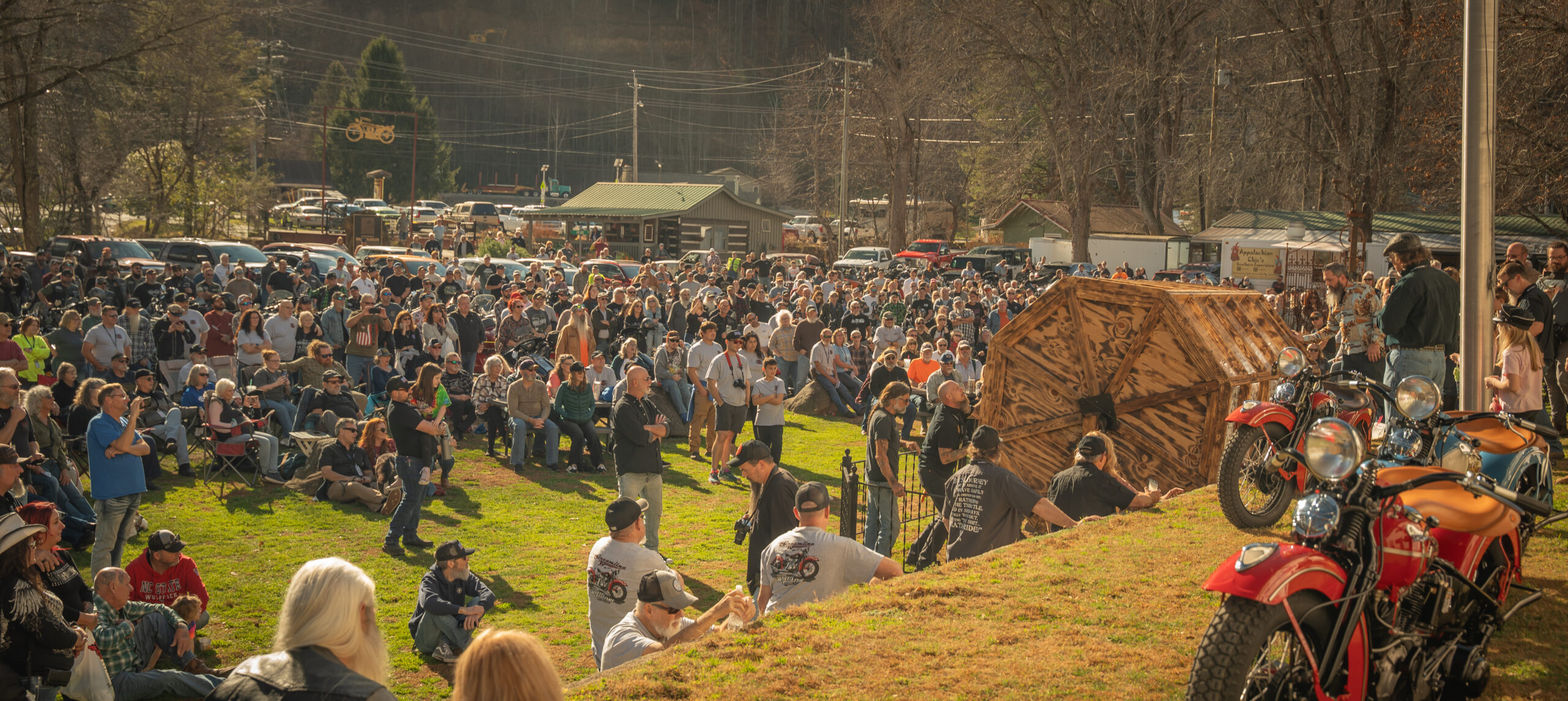 After a countdown from the crowd, she reached in and pulled out one ticket, handing it to Museum Curator Matt Walklser, who read off the name to the waiting crowd. The Grand Prize winner was Duane Ware of Winder, GA. Ware wasn’t present for the drawing, but as soon as he got the call from Walksler, he jumped in his truck and made his way to Maggie Valley. Ware, a longtime supporter of the museum, has bought tickets for almost 20 years, and this year it paid off. The 1939 Knucklehead will be Ware’s first kickstart classic motorcycle.